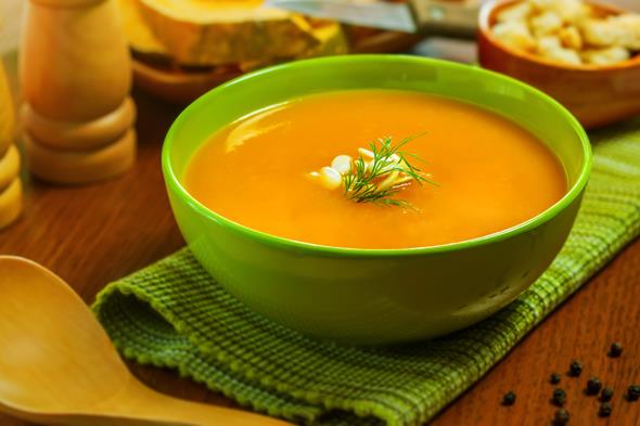tencerede hazırlama şekli: soğan ve sarımsağı zeytinyağında çevirin. balkabağı, patates ve tavuk suyunu ilave edin. kısık ateşte 20 dakika pişirin. haşlanmış sebzeleri robottan geçirin.