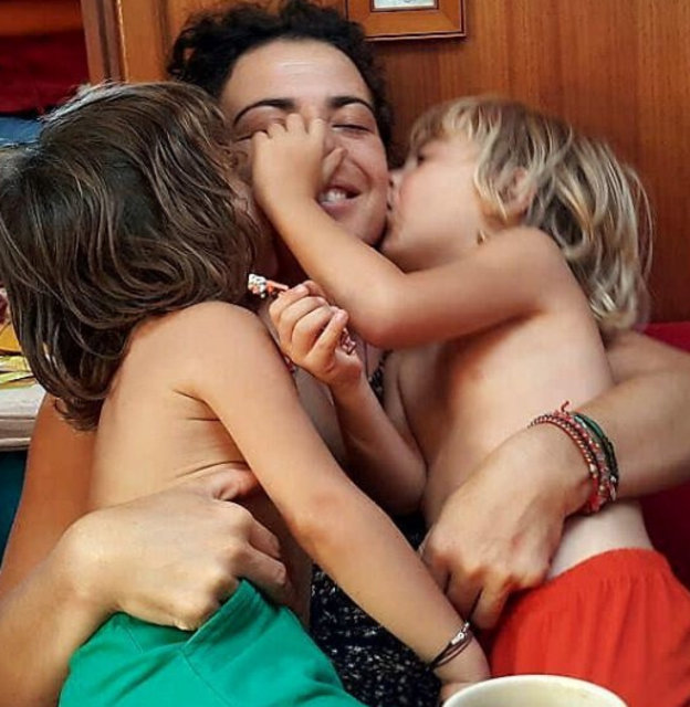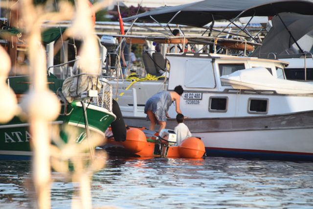 10 yıldır eşi mehmet aksın ve çocuklarıyla teknede yaşayan yeşim büber, alışveriş için karaya indi.