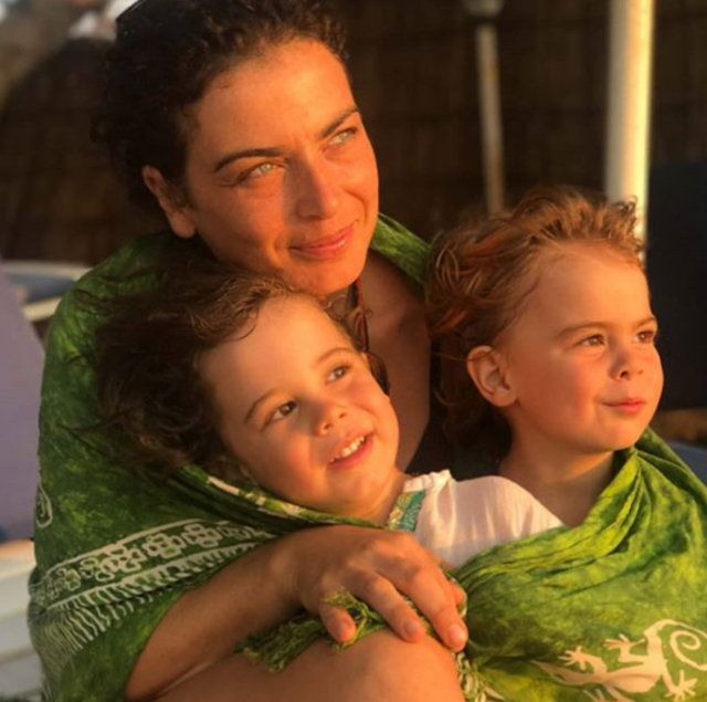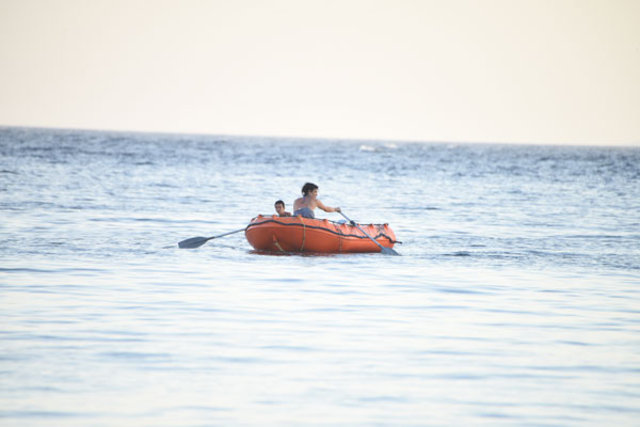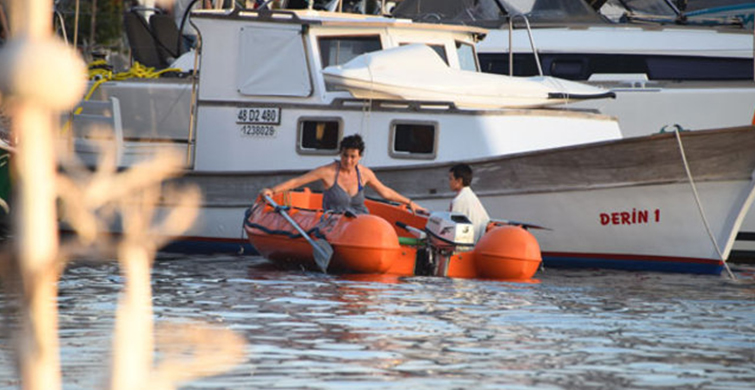 ikiz çocukları can yunus ve nehir’i teknede bırakan oyuncu, kürek çekerek kıyıya çıktı.