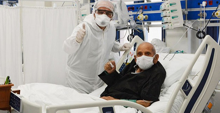 Denizli'de coronavirüs sebebiyle 8 gün önce yoğun bakıma alınan 100 yaşındaki süleyman çavdar, hastalığı yenerek, alkışlar eşliğinde servisteki odasına alındı.