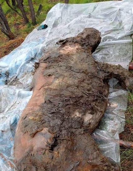 DHA'nın haberine göre buzulun çözülmesiyle ortaya çıkan gergedanın genç olduğu, bataklık ya da nehirde mahsur kalarak boğulduğu düşünülüyor.