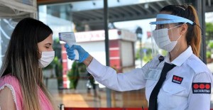 Vatandaşların ilk önce ateşleri ölçüldü, sonra mağazalara alındı.