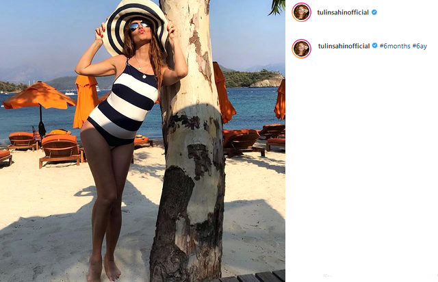 6 aylık hamile olan şahin, ınstagram hesabından mayolu fotoğrafını paylaştı.
