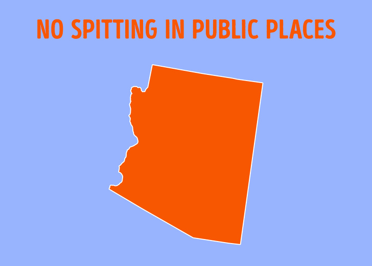 Arizona , goodyear'da bir deveyi taklit etmeye çalışmasanız iyi edersiniz. şehirde kalan insanların hiçbir kaldırıma, şehirdeki yaya geçitlerine, kamuya açık yollara, otoyollara, kamuya açık alanlara veya şehir parklarına tükürmelerine izin verilmemektedir.