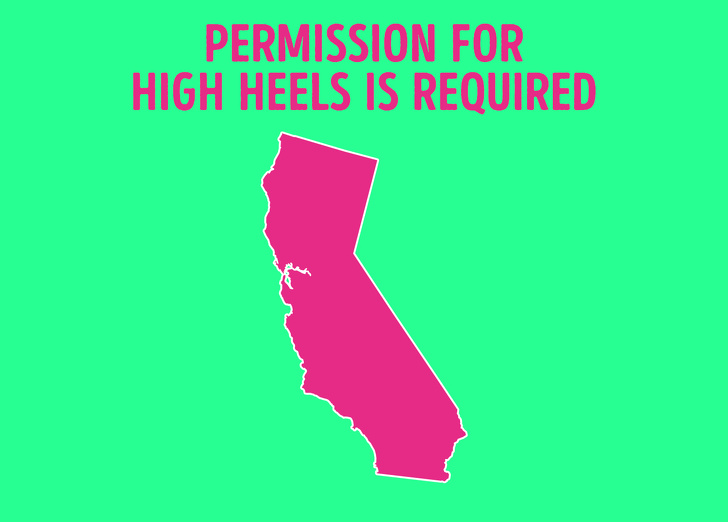 Kaliforniya'daki yüksek topuklulara karşı gerçekten bir şeyleri var gibi görünüyor . orada yüksek topuklu ayakkabı giyemezsin. hala bu tür ayakkabıların tadını çıkarmak istiyorsanız, özel izin almanız gerekir.