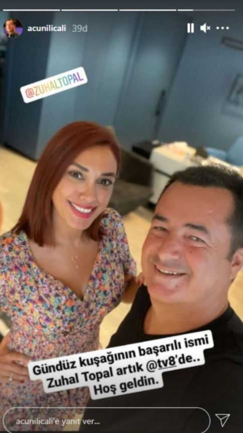 Başlayacak olan yeni gündüz kuşağında program sunması için Zuhal Topal ile anlaşma sağlayan Acun Ilıcalı, müjdeli haberi de Instagram hesabı üzerinden paylaştı. Topal ile fotoğrafını paylaşan Ilıcalı, 'Gündüz kuşağının başarılı ismi Zuhal Topal artık TV8... Hoş geldin' ifadelerini kullandı.