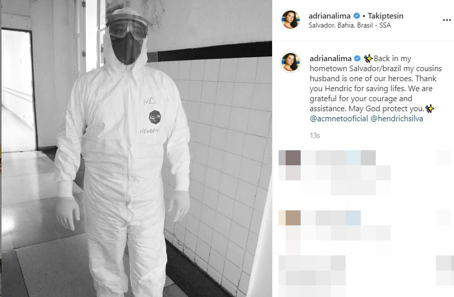 Dünyaca ünlü model adriana lima, sosyal medya hesabında yaptığı paylaşımla kuzeninin sağlık çalışanı olan eşi hendric'e teşekkür etti.