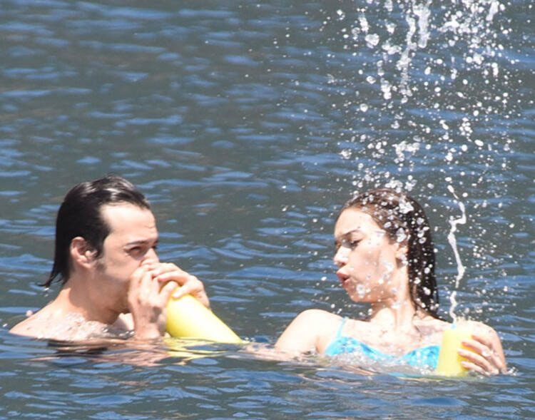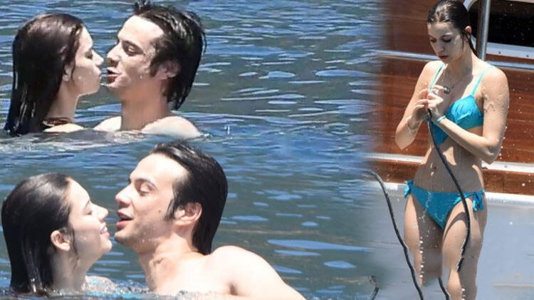 Mavi tura çıkan afra saraçoğlu ve mert yazıcıoğlu çifti denizde sarmaş dolaş olarak görüntülendi. afra saraçoğlu sevgilisini öpmelere doyamadı.