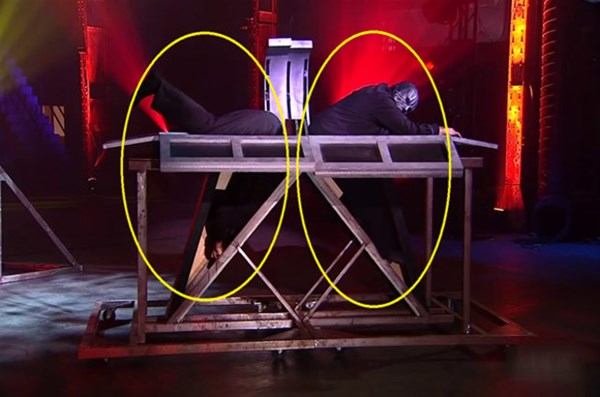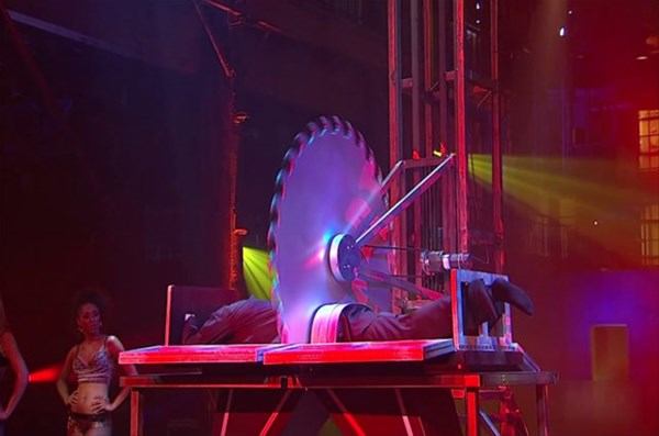 Dev testere ile kendini ikiye bölme gösterisi yapan sihirbazın hazırladığı özel hile sizleri çok şaşırtacak. işte o gösteri ve hilesi...