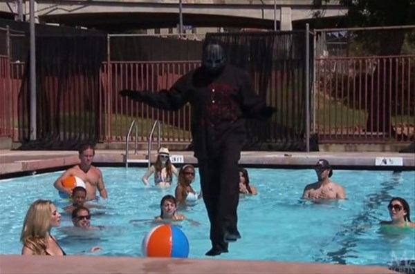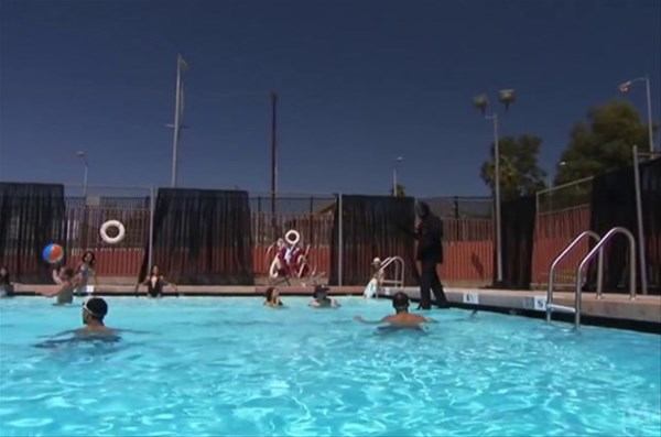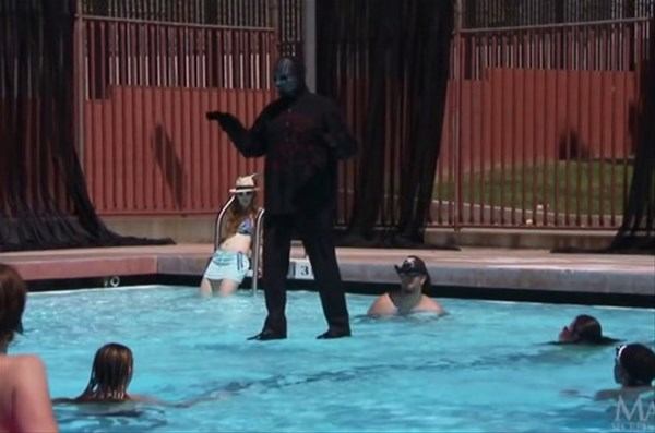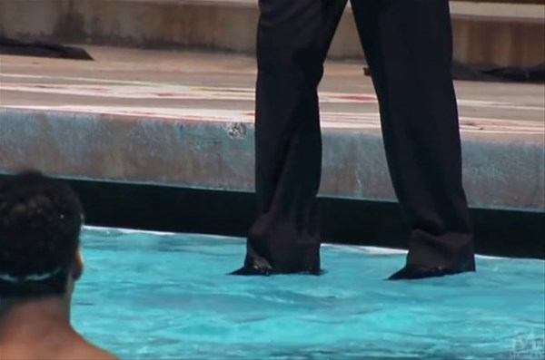 Sihirbaz, kamera açısını kendi lehine kullanarak havuzda, su üzerinde yürüme gösterisi yaptı.