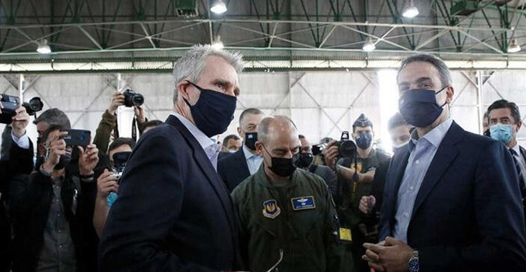 Başbakan Miçotakis'in yanında Savunma Bakanı Nikos Panagiotopoulos, Genelkurmay Başkanı Konstantinos Floros ve ABD'nin Yunanistan hayranı Atina Büyükelçisi Geoffrey Pyatt vardı.
