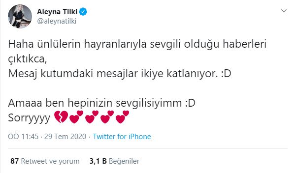 ‘haha ünlülerin hayranlarıyla sevgili olduğu haberleri çıktıkça, mesaj kutumdaki mesajlar ikiye katlanıyor… ama ben hepinizin sevgilisiyim. üzgünüm’