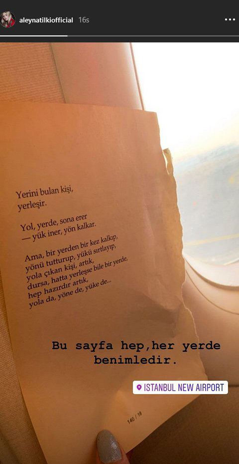 Aleyna tilki’nin 'bu sayfa hep, her yerde benimledir' notuyla yayınladığı sayfada şu satırlar yazıyor: “yerini bulan kişi yerleşir.