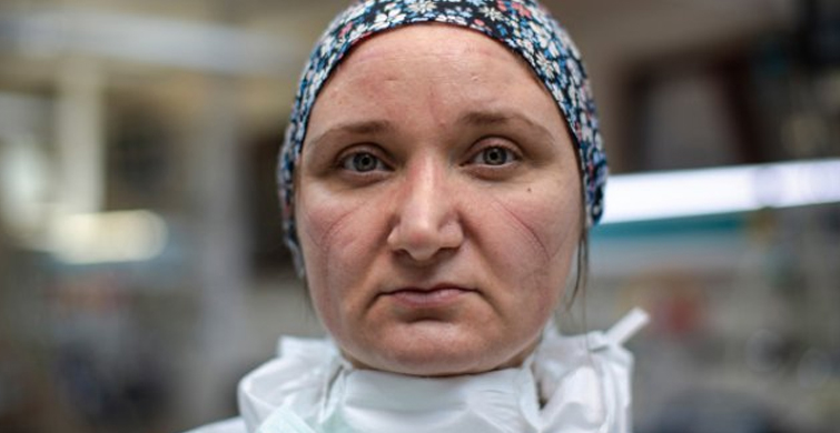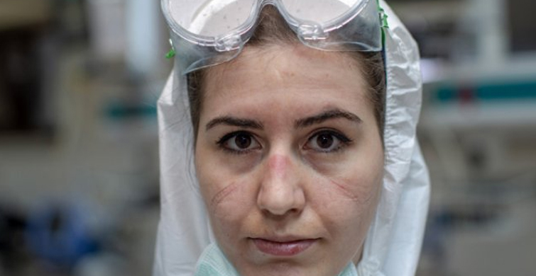 Yeni tip coronavirüs salgınında ön safhada savaşan gazi üniversitesi hastanesi sağlık görevlileri yaşadıkları süreci anlattı. uzun süre maske ve önlüklerle çalışan görevlilerin yorgunluğu yüzlerindeki maske izlerinden okundu.
