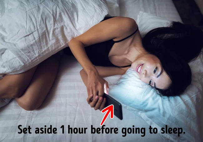 Uyumadan önce akıllı telefonunuzu kullanmak. aynı mavi ışık aynı zamanda uyku düzeninizi bozabilecek melatonin üretimini de baskılar.irade gücümüzü test edelim ve yatmadan en az bir saat önce akıllı telefonlarımızı bir kenara bırakalım.