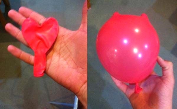 Kalp şeklinde sipariş edilen bir balon, alıcı tarafından şişirildiğinde kalbin başlarında sadece iki çıkıntı olarak görülüyor.