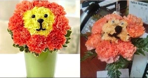 Turuncu renk üzerine sarı detaylarla hayvanın yüzünün çizildiği ve siyahlarla belirginleştirildiği çiçek, alıcının eline geçtiğinde soluk renkli ve oldukça ucuz görünüme kavuşmuş.