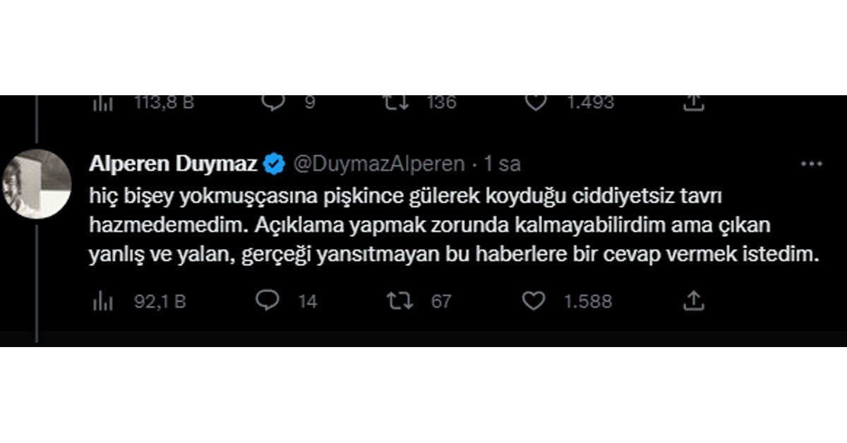 Bunun üzerine Alperen Duymaz’ın, rol arkadaşını takipten çıkması haberleri doğrulamıştı.