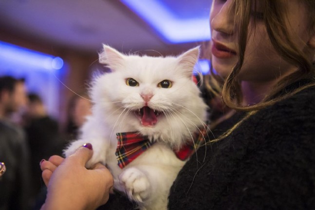 Sahibine çok bağlı olan, sürekli onu takip eden ankara kedisi, kar beyazı, gri ve siyah renkte olabilir