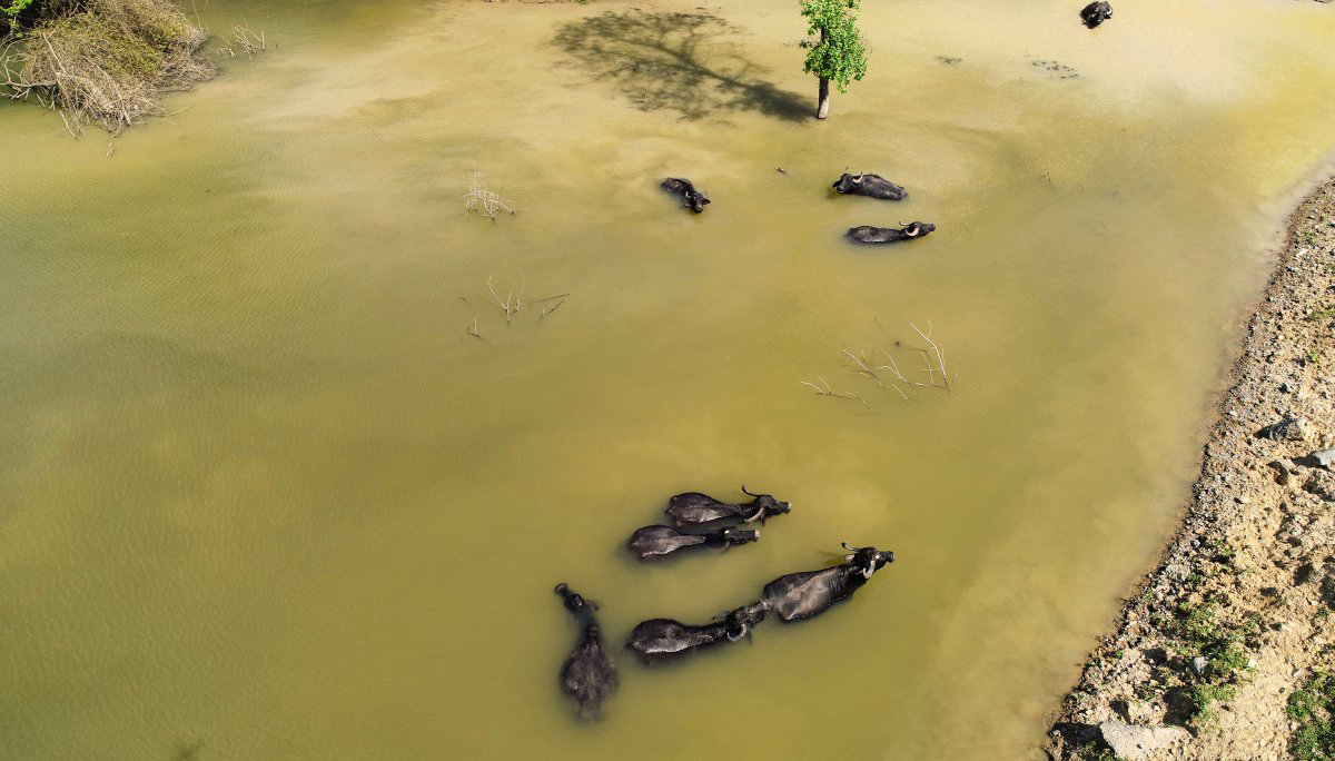 Su ve çamuru sevdiği bilinen mandaların mutlulukları da kameralara yansıdı.