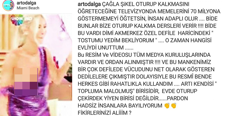 Şarkıcı arto, sosyal medya hesabında yaptığı paylaşımla, model ve sunucu çağla şıkel’in youtube kanalında yayınladığı ‘mini etek ile oturma ve kalkma’ konulu videosunu eleştirdi.