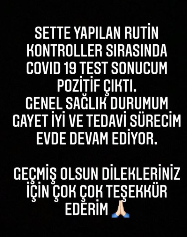 'sette yapılan rutin kontroller sırasında covid-19 test sonucum pozitif çıktı. genel sağlık durumum gayet iyi ve tedavi sürecim evde devam ediyor.' oyuncunun, 14 günlük ev karantinası başladı.