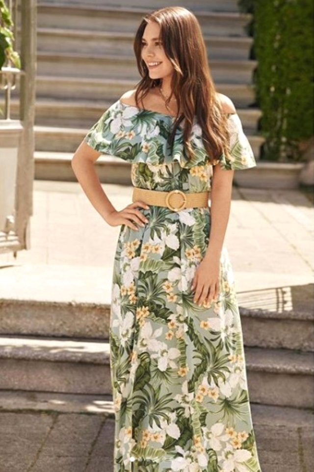Güzel oyuncu elbise koleksiyonu için poz verdi.