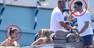 Arkadaşlarının eşlik ettiği ünlü çift, denize açılarak kaan demirağ'ın teknesine doğru yola çıktı.