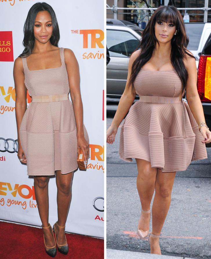 Zoe saldana ve kim kardashian aynı kıyafetle...