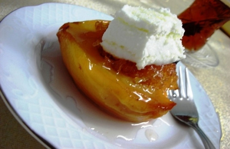 Malzemeler 4 adet büyük boy ayva 16 yemek kaşığı toz şeker 5 su bardağı su 1 adet çubuk tarçın 3 adet karanfil servisi için:100 gram kaymak 4 yemek kaşığı toz antep fıstığı püf noktası ayvaları soyduktan sonra limonlu suda bekletirseniz, ayvaların kararmamasını sağlarsınız. pişirme önerisi ayva tatlısını; 30 dakika tencerede ardından önceden ısıtılmış 180 derece fırında 30 dakika daha pişirerek karamelize bir tat elde edebilirsiniz.