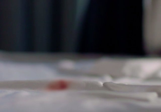 Seher'in kan izinin fark ettiği anda kamera bir anda kan lekesini ekrana getirir.