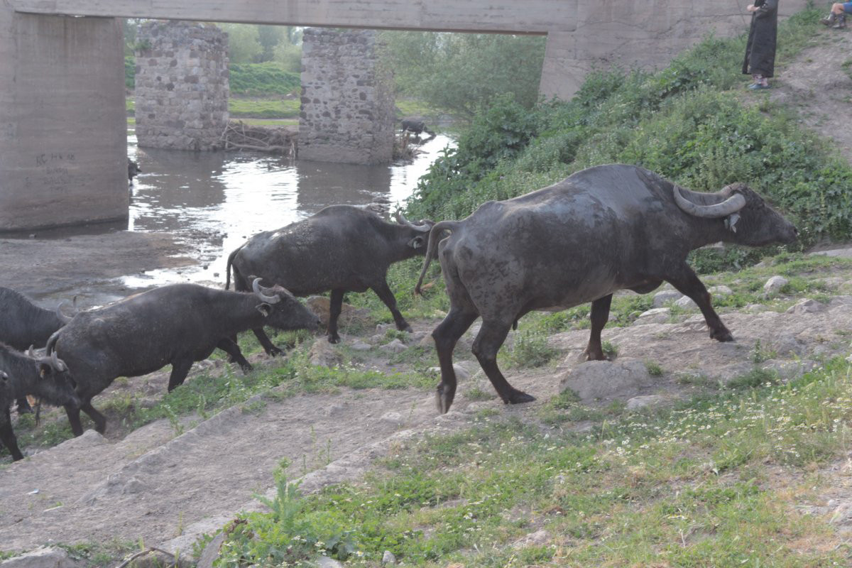 Mahalle sakinleri sahip oldukları mandaların eve dönüşlerini dere kenarında bekleyip, ahırlarının yolunu bilen mandalara eşlik ediyor.