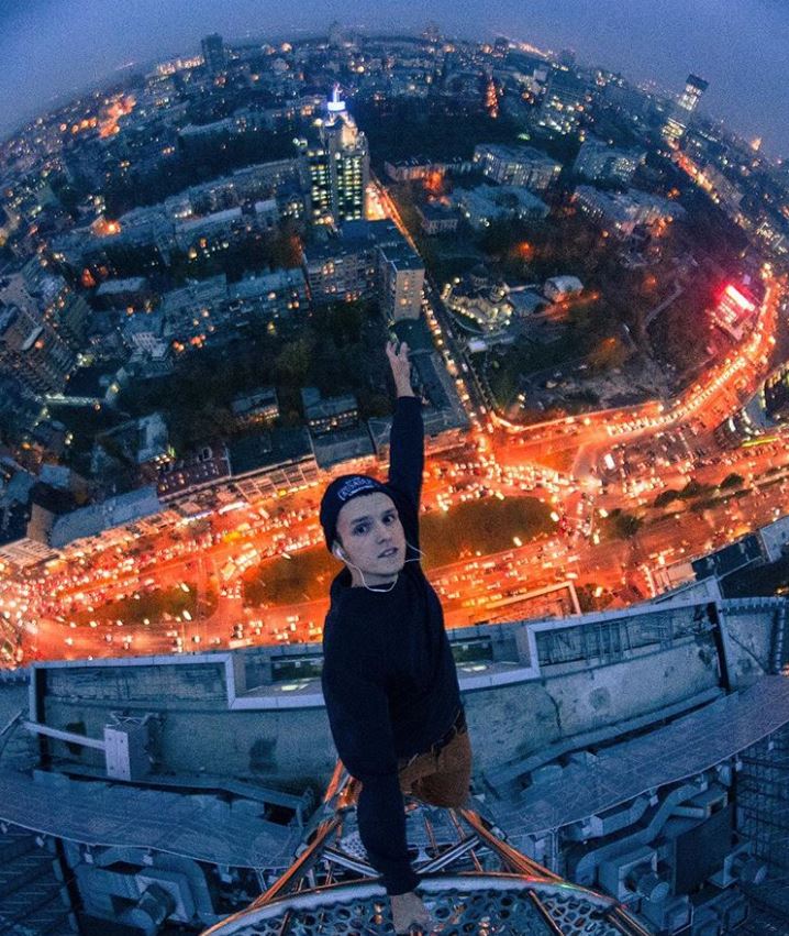Bir vincin tepesinde. cesurca fakat tehlikeli de.