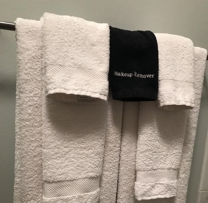 "otel odamda makyajlı ciltler için bir havlu var. böylece beyaz olan havlular lekelenmiyor."