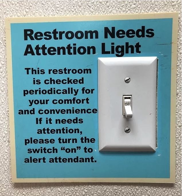 "benzin istasyonundaki bu tuvaletin, temizliğe ihtiyacı olduğunda çalışanları uyaran bir şalteri var."