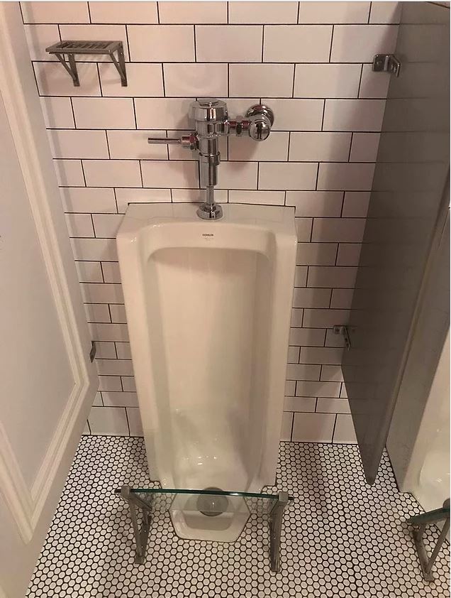 "bir barda, ayakkabılarınız için bir sıçrama koruması ve içeceğinizi koymanız için mini bir raf var."