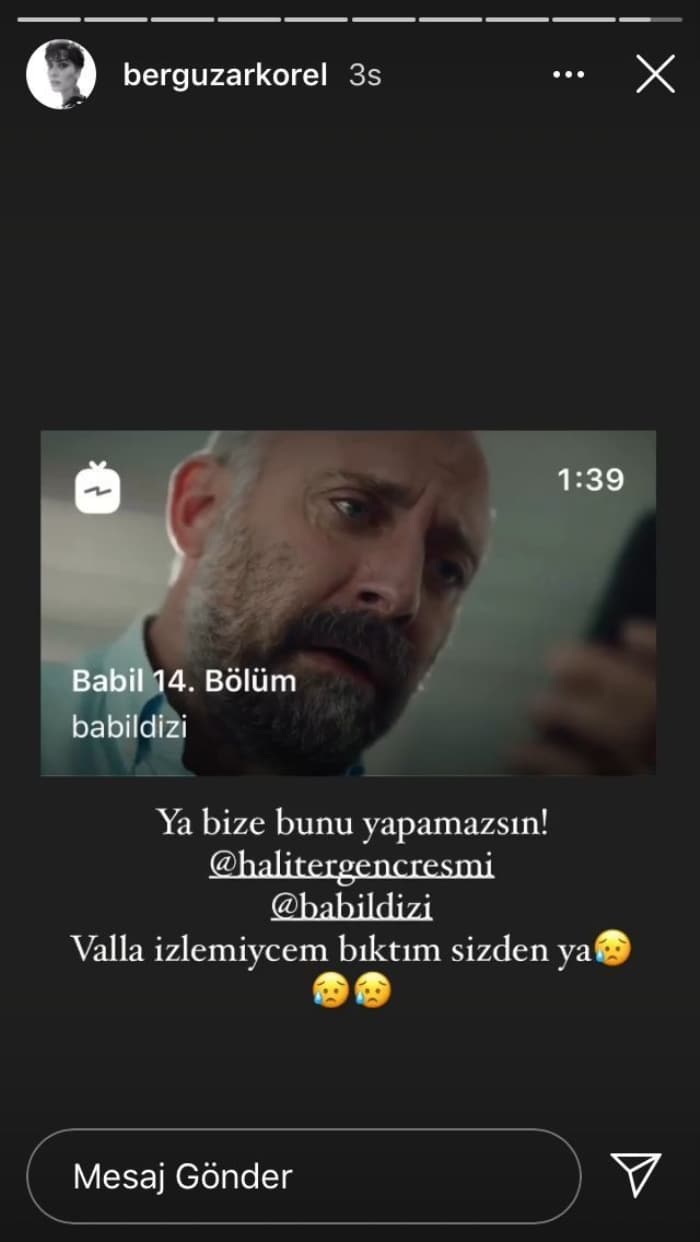 Yaptığı paylaşımına övgüyü adeta isyan edermiş gibi yapan Korel: 'Ya bize bunu yapamazsın! Valla izlemeyeceğim bıktım sizden ya!' notunu paylaştı.