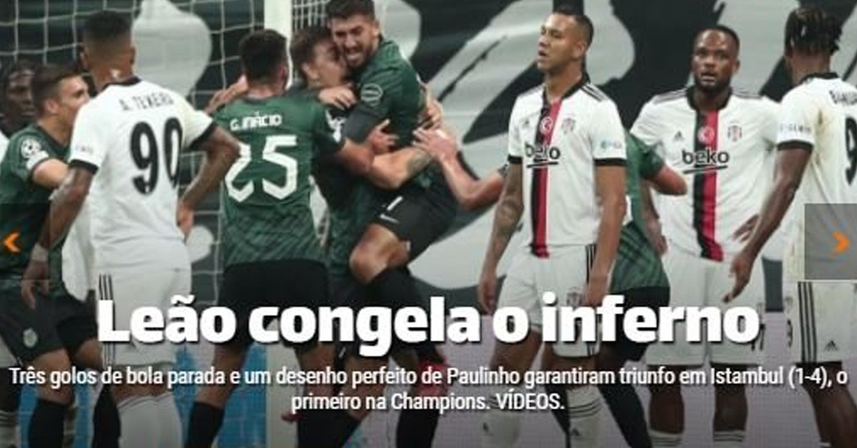 Bir başka Portekiz spor gazetesi MAIS FUTEBOL, Sporting Lizbon'un Beşiktaş karşısında aldıkları galibiyeti ''Aslan, cehennemi dondurdu'' şeklinde verdi.