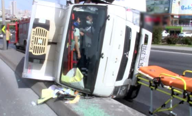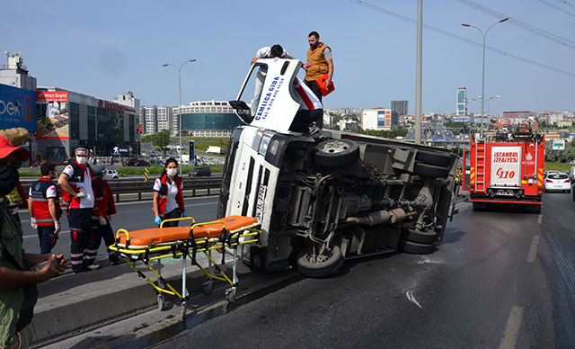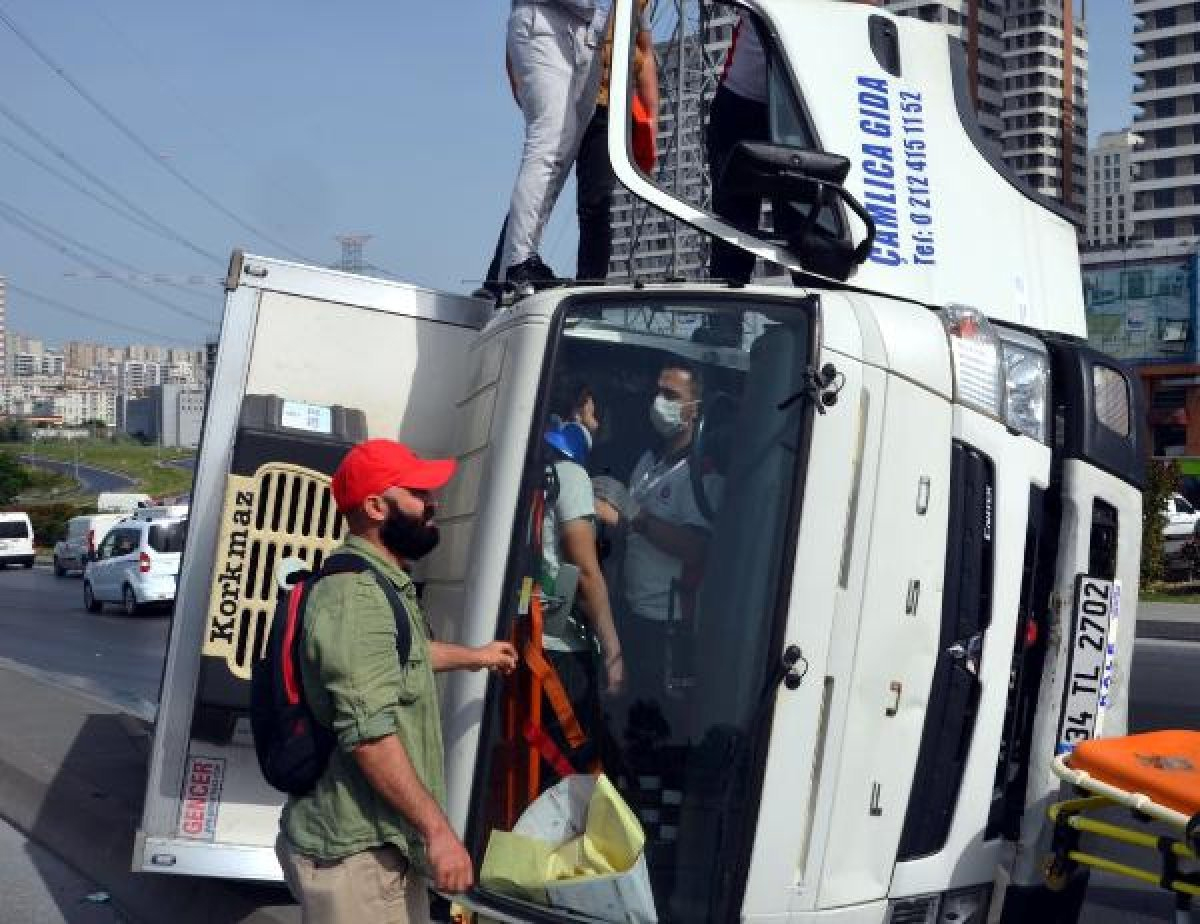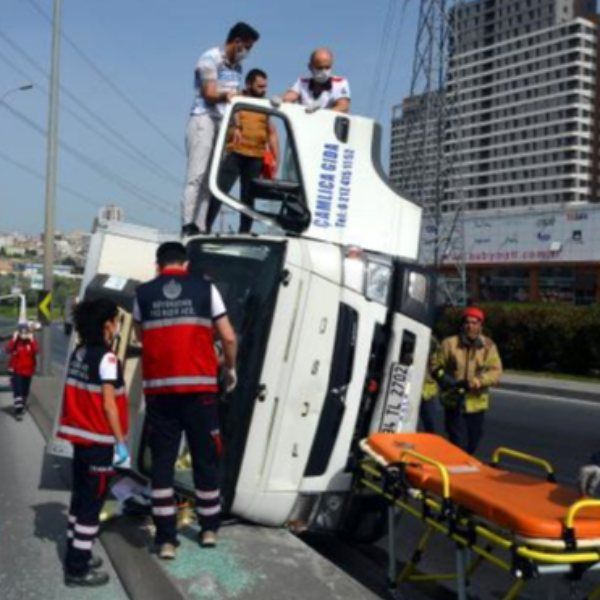 İstanbul'da, avcılar'dan beylikdüzü yönüne doğru seyir halinde olan bir gıda kamyonu, kullanıcısının direksiyon hakimiyetini yitirmesinin ardından takla attı.
