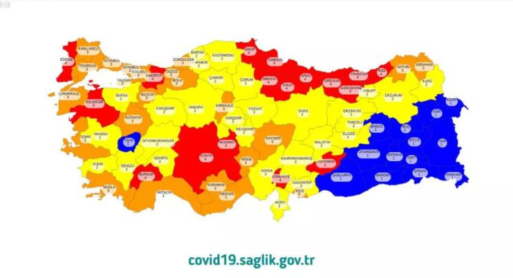 Türkiye'de koronavirüsle mücadele kapsamında başlanan 'yerinde karar' döneminde Sağlık Bakanlığı'nın il bazlı risk durumlarını açıklaması bekleniyor. Konuyla ilgili katıldığı canlı yayında açıklamalar yapan Bilim Kurulu üyesi Prof. Dr. Mustafa Hasöksüz, "Renklendirilmiş haritada baktığımızda sarı ve mavilerin azalacağını, turunculardan kırmızıya döneceğini göreceğiz. Özellikle Marmara Bölgesi'nde İstanbul, Çanakkale, Tekirdağ, Kocaeli gibi illerimiz kırmızıya dönecek gibi duruyor" dedi.