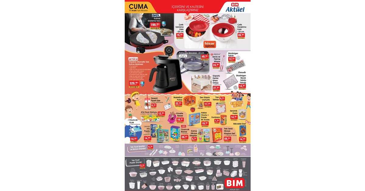 Bu hafta Bim'de mutfak ürünleri de dikkat çekiyor. Saklama kaplarından salata kaseleri ve baharatlıklara kadar birçok ürün bu hafta reyonlarda. Arnica Köpüklü Otomatik Türk Kahve Makinesi 329 TL fiyatıyla bu hafta Bim'de.