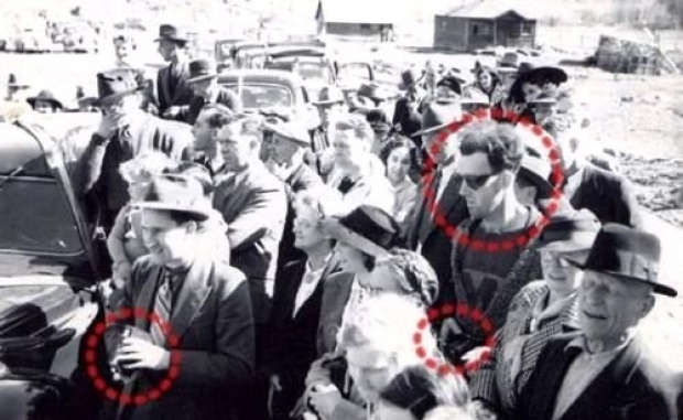 1941 yılında çekilmiş bu fotoğraf, dünyada zaman yolculuğunun temsili fotoğrafı konumunda. bir köprü açılışı sırasında çekilen fotoğrafta, dönemin kılık kıyafetiyle alakası olmayan giyiminde bir adam ve elindeki kayıt cihazı dikkat çekiyor. zaman yolculuğu ne kadar gerçektir bilinmez ancak söz konusu kişinin gözlüklerinden tutun tepeden tırnağa zamanının çok ötesinde olduğu kesin.