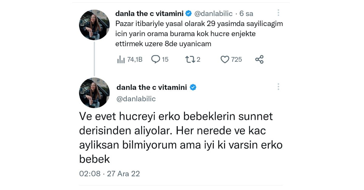 Bu olayın ardından sosyal medya fenomeni Danla Biliç de aynı işlemi gerçekleştireceğini duyurdu.