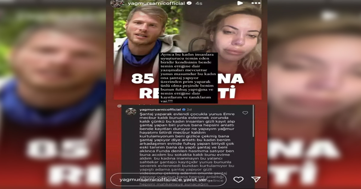 Yağmur Sarnıç "Bu kadın ona şantaj yapıyor üzerinden prim yaparak ünlü olma peşinde, benim bunun fuhuş yaptığına ve temin ettiğine dair kayıtlarım ve tanıklarım var" demesi herkesi şoke etti.