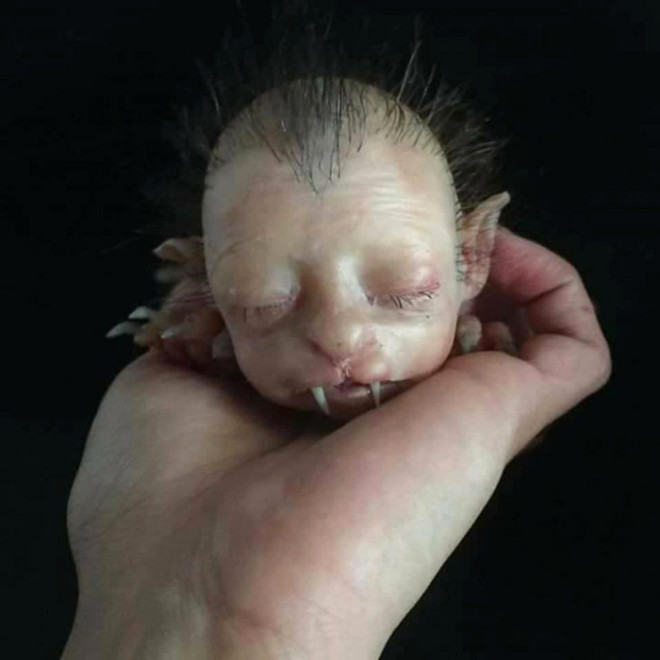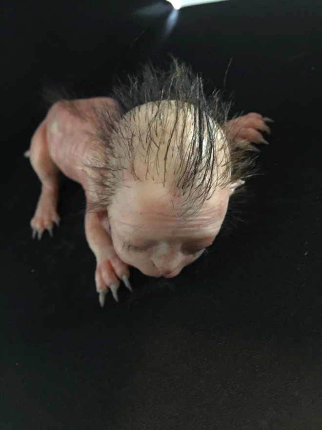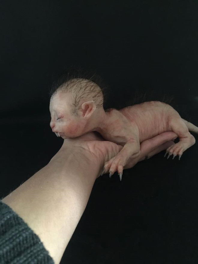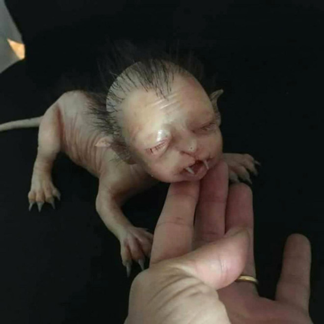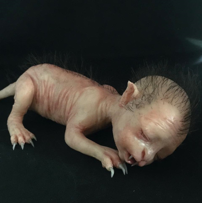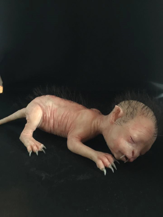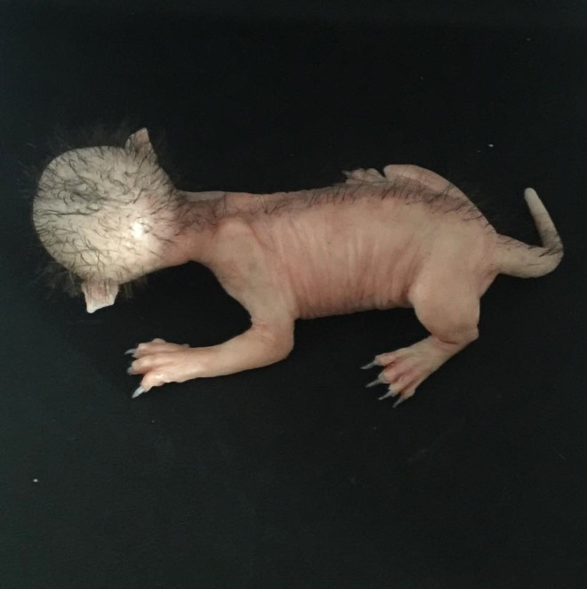 Yarı insan yarı kedi görünümlü bebek yaratık mı, insan mı, ne olduğuna anlam verilemiyor.