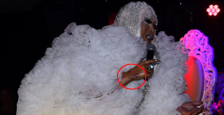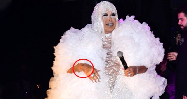 Ünlü şarkıcı Bülent Ersoy, geçtiğimiz akşam Şişli'de bir mekanda hayranları ile buluşup sahne aldı. Gelinliğe benzeyen beyaz kabarık bir elbise tercih eden Ersoy, yine adından söz ettirdi. Mikrofon tuttuğu elinde morluklar fark edilen Bülent Ersoy hayranlarını korkuturken ellerinin neden morardığı ise biliniyor.