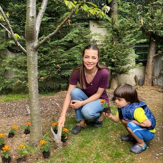 Burcu kara, oğlu ali ile birlikte evinin bahçesine çiçek ekerken çekilmiş bir karesini ınstagram sayfasında takipçilerinin beğenisine sundu.