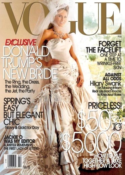 Beş yıllık ‘bol açıklamalı' flört sürecinden sonra, çift trump'a ait olan palm beach'teki 58 oda ve 33 banyosu olan ‘mar-o–lago' malikânesinde evlendi. melania'nın giydiği 600 bin tl değerinde christian dior tasarımı, tüm zamanların en ikonik gelinliklerinden biri sayılıyor. model, aynı gelinlikle vogue dergisinin de kapağını süsledi.
