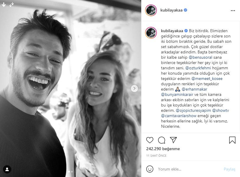 Erken final yapan dizisinin başrol oyuncuları Kubilay Aka ve Bensu Soral, sosyal medya hesaplarından hayranlarına veda mesajları paylaştı.