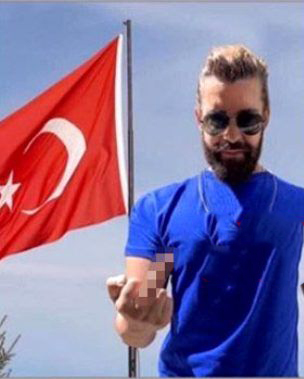 Yunan bir model türk bayrağının önünde orta parmak hareketi yapmıştı.